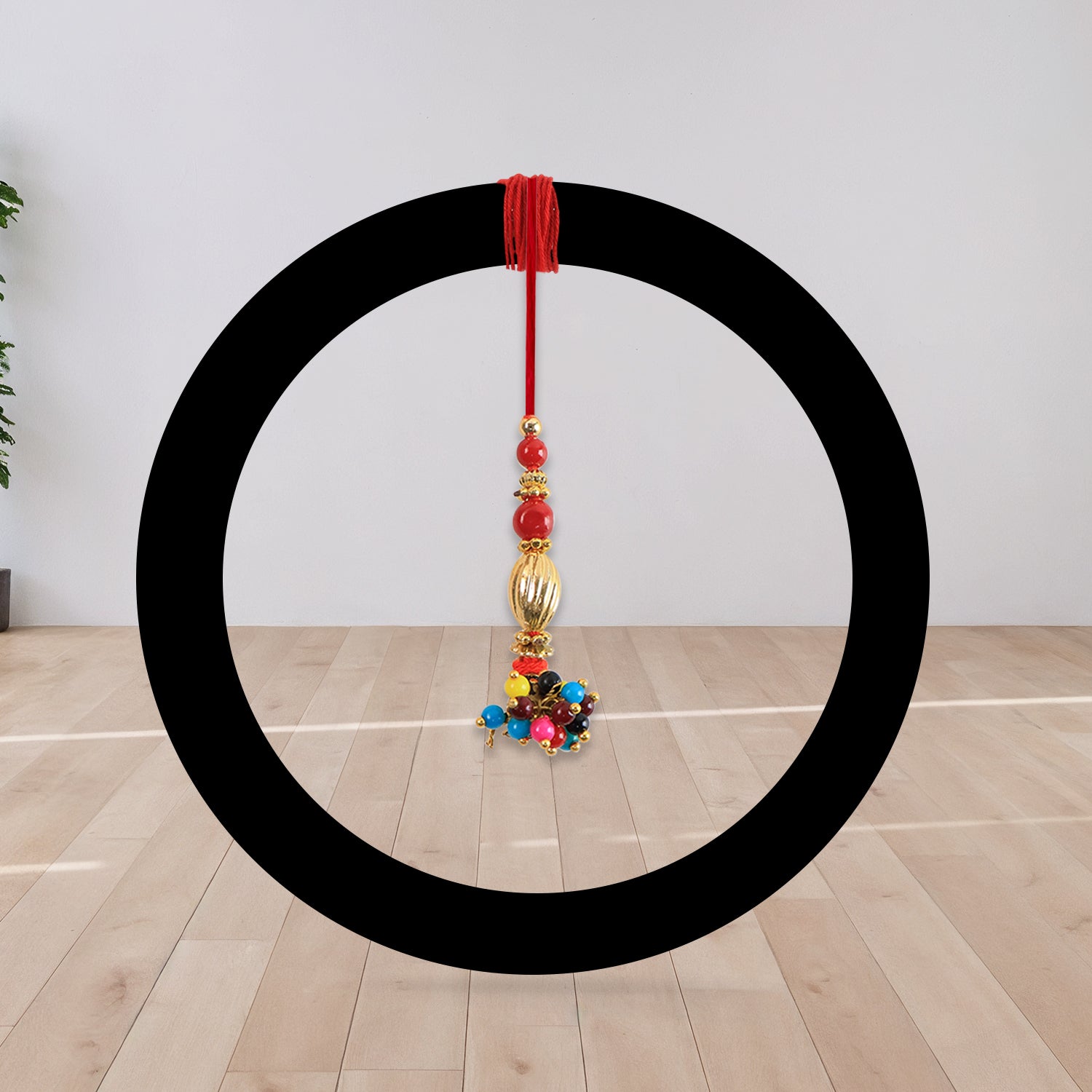 Bhabhi Lumba Rakhi With Multicolor Beads And Golden Floral Charm On Red Thread