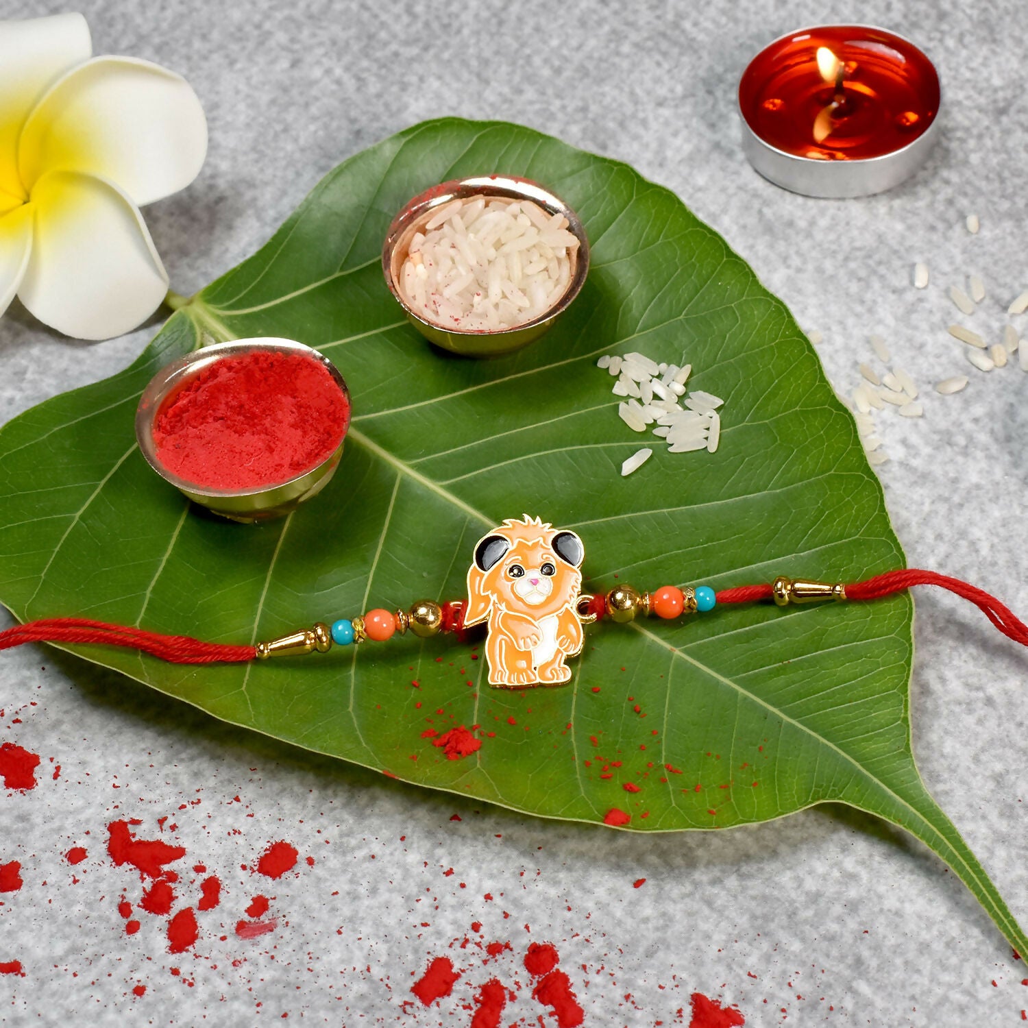 Cute Lion Cartoon Kids Rakhi With Multicolor Beads And Red Thread