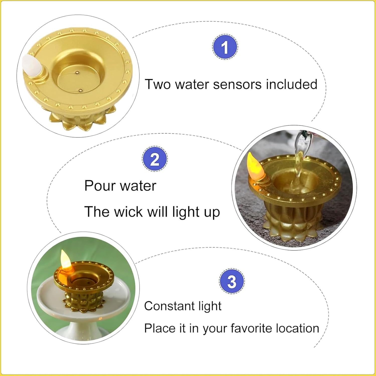 Experience the perfect blend of tradition and technology with this set of 3 Water Sensor LED Golden Diyas. Crafted in a traditional diya shape with a golden finish, these innovative diyas automatically light up when placed in water, replicating the warm glow of real oil diyas without smoke, fire, or dripping wax. Safe, reusable, and eco-friendly, they are ideal for pooja rooms, temples, meditation areas, and festive decorations like Diwali, Navratri, Ganesh Chaturthi, and more. These water sensor diyas bring divine beauty and modern convenience into your celebrations.